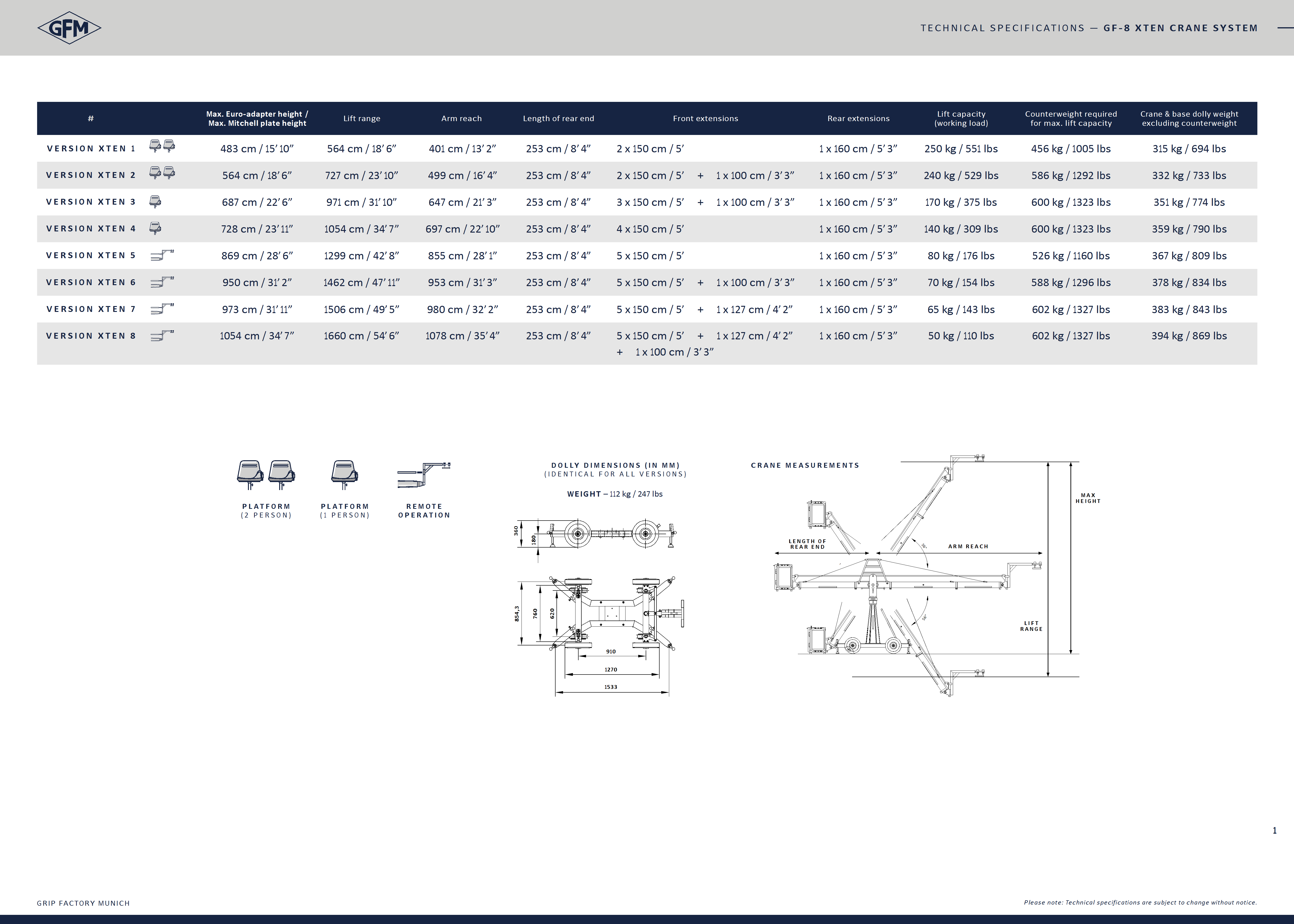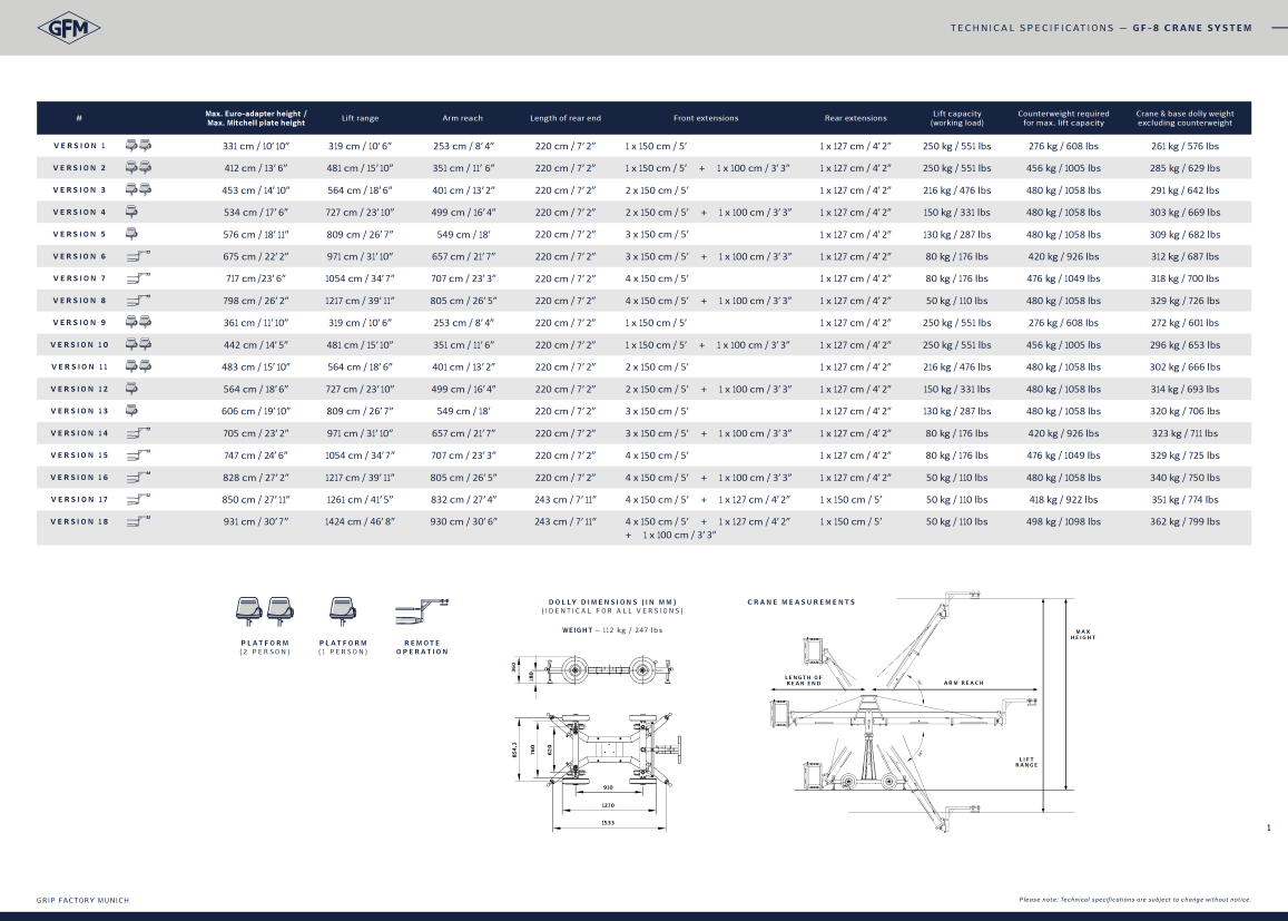By adding the Xten Kit, the standard GF-8 crane can be extended to a GF-8 Xten Crane providing extra height and lift range.