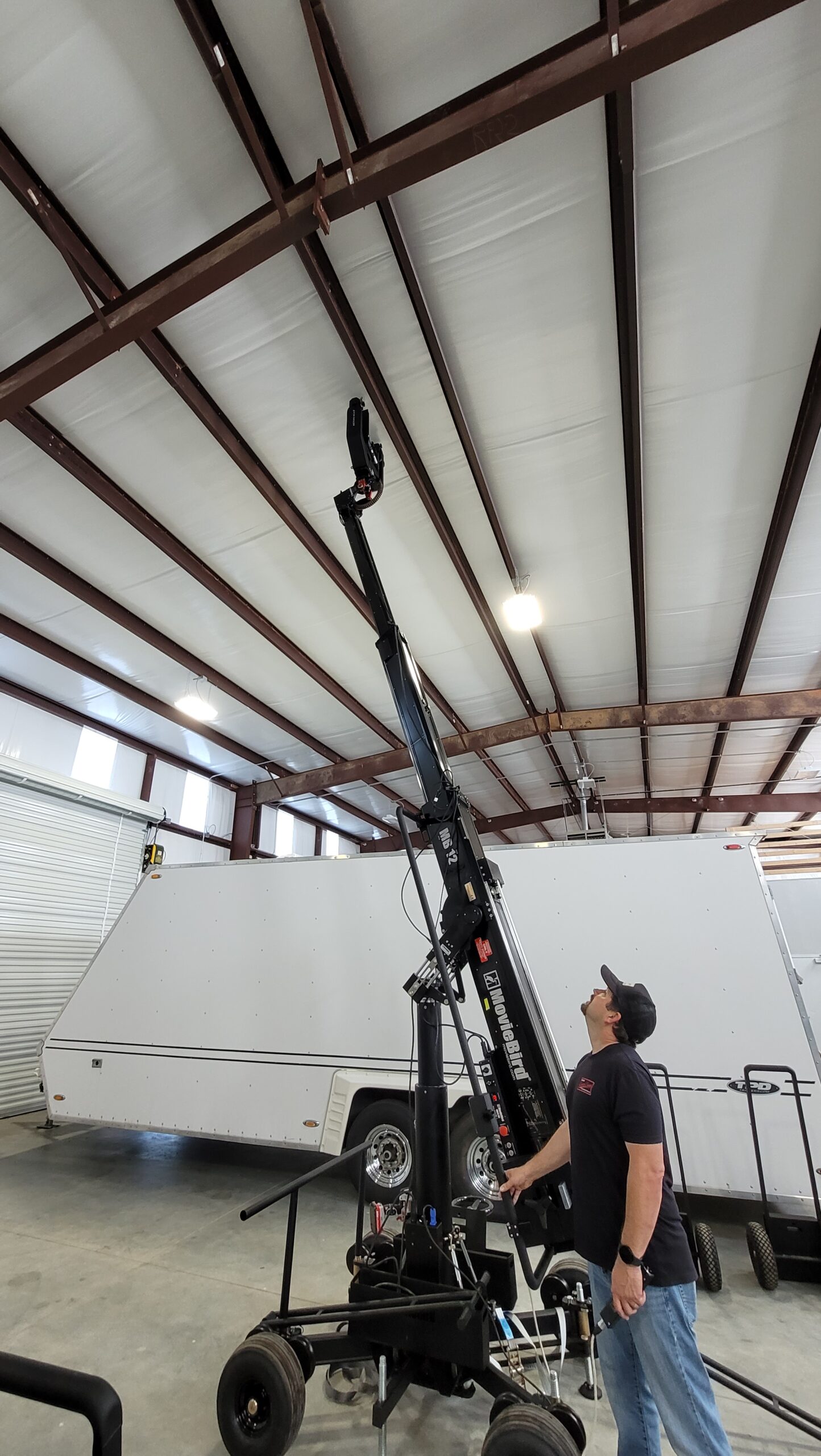 The new MB12 MiniBird with VertiCrane functionality is the world’s first and only telescopic camera crane in production capable of a vertical telescopic movement with a tilt range from -25 degrees to true 90 degrees vertical. It’s unique foldable Yoke allows it to transform from a standard telescopic crane with a symmetrical tilt angle range to a VertiCrane with reduced downward tilt range and vertical capability.This increased capabilities allow the crane to shoot previously impossible shots in tight places, narrow staircases etc. The foldable Yoke allows the operator a smooth tilt movement from -25 to 90 degrees and full uninterrupted pan movement.
